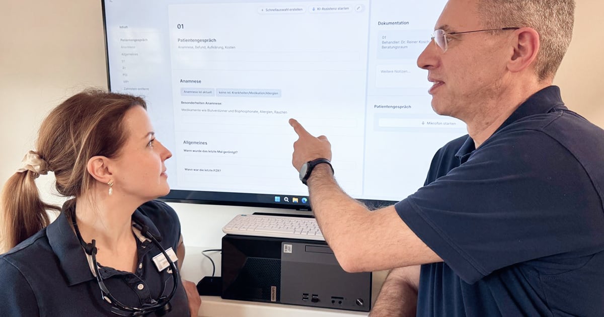 Die KI-Assistenz Sonia erstellt zuverlässig und sicher eine stets vollständige Doku - „unabhängig von der Erfahrung oder Stimmung der Mitarbeitenden“, so Dr. Reiner Koschitzke. Sandra Bahr bestätigt: „Sonia ist immer verlässlich da und leistet immer einheitliche und vollständige Arbeit.“ Für Dr. Burghardt Zimny „übernimmt die KI-Assistenz den Großteil der Dokumentation - von den Patientengesprächen über die Kostenaufklärung bis hin zu den besprochenen Alternativen. Und das in einer beeindruckenden Detailtiefe, die automatisch erfasst wird. Besonders bei komplexeren Fällen ist Sonia eine echte Unterstützung. Sie bringt selbst anspruchsvolle Sachverhalte schnell und präzise in eine perfekt strukturierte Dokumentation - ohne, dass man noch groß nacharbeiten muss.“ Anna Nasilowski betont: „So umfangreich und genau haben wir vorher nicht dokumentiert. Vorher stand bei der Oberflächenanästhesie einfach „OL“, jetzt wird alles ausgeschrieben. Auch die Patientenaufklärung wird von Sonia festgehalten - das haben wir vorher nicht dokumentiert.“