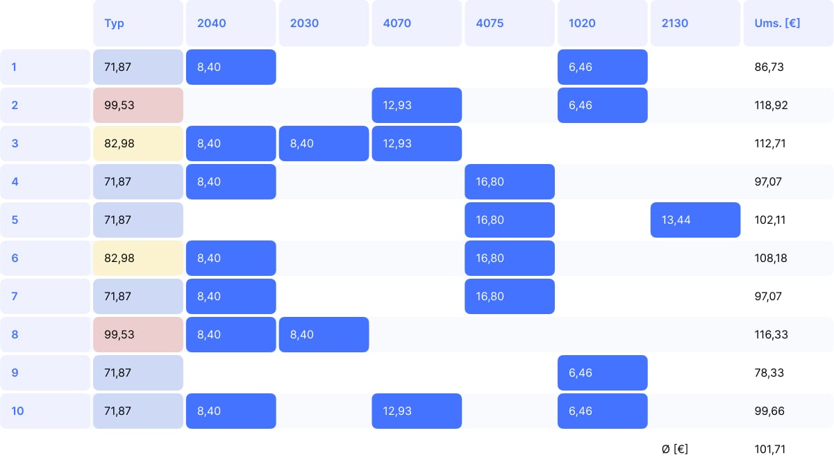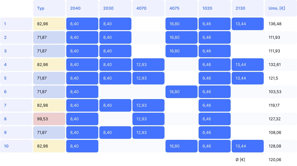 Durchschnittlich kombiniert: 187,39 €